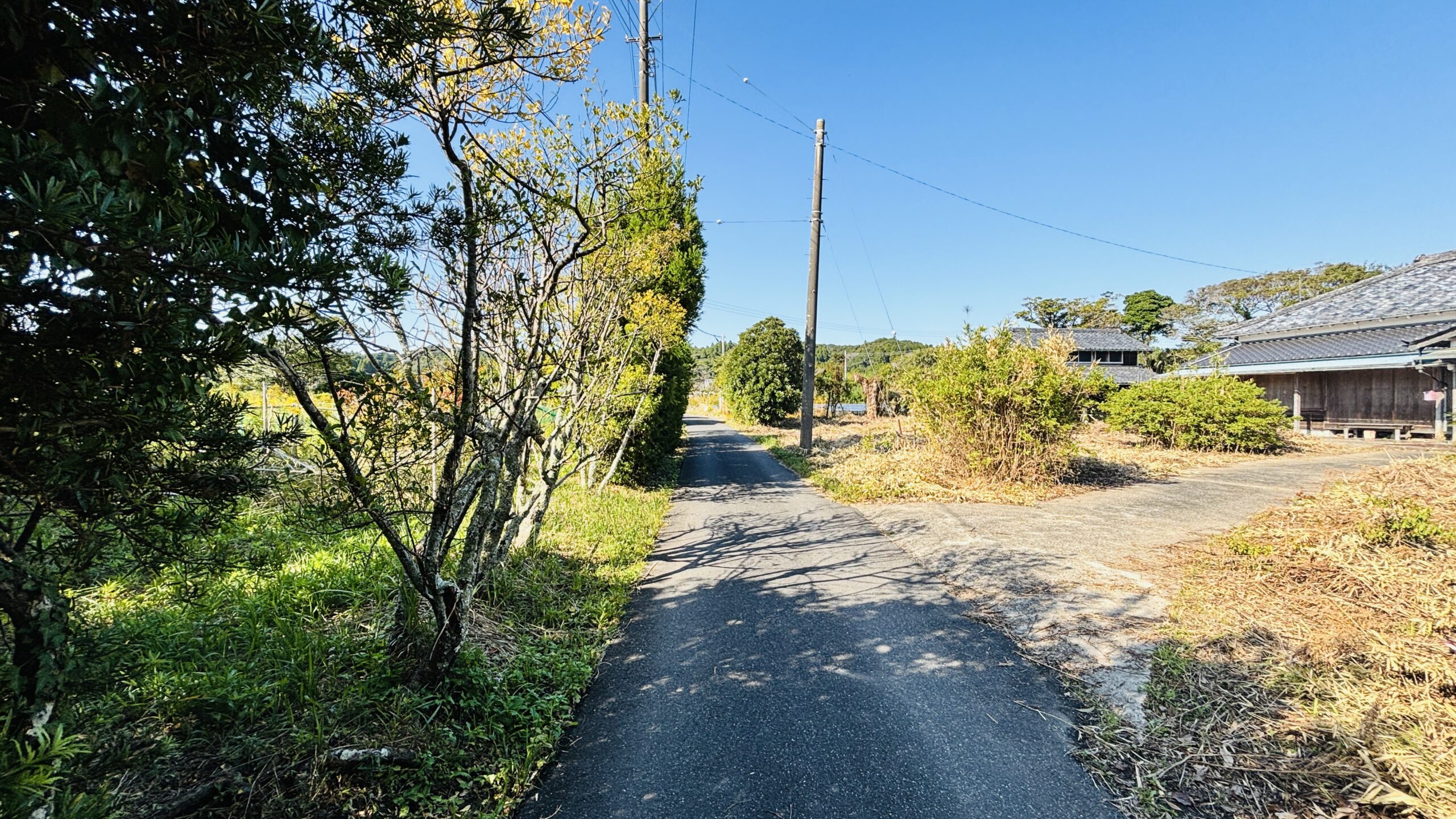 それでは外回りを見ていきましょう。道路は幅員約3.5mから4mです。2項道路になりますので、再建築の際、セットバックが必要です。