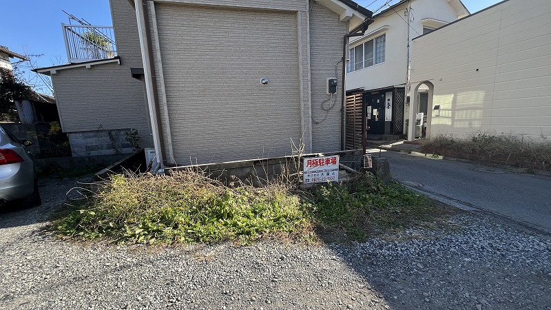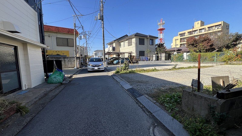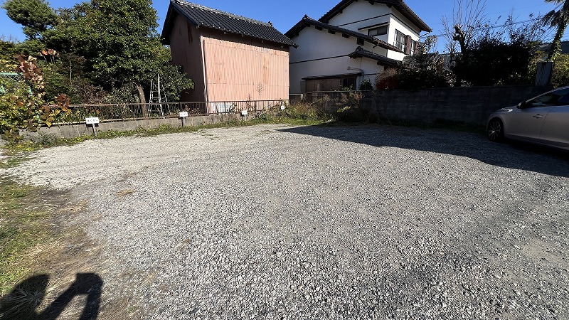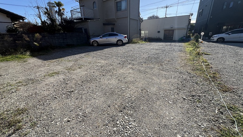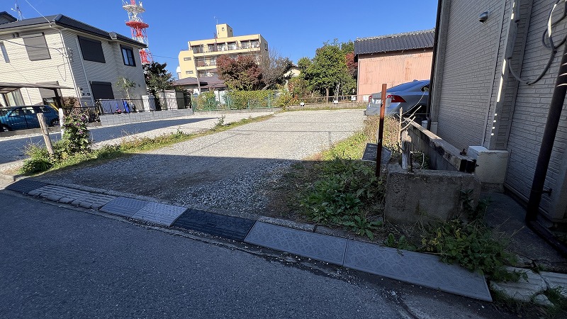 前面道路から見た敷地です。以前建物が建って解体して現在は、月極駐車場として利用中です。