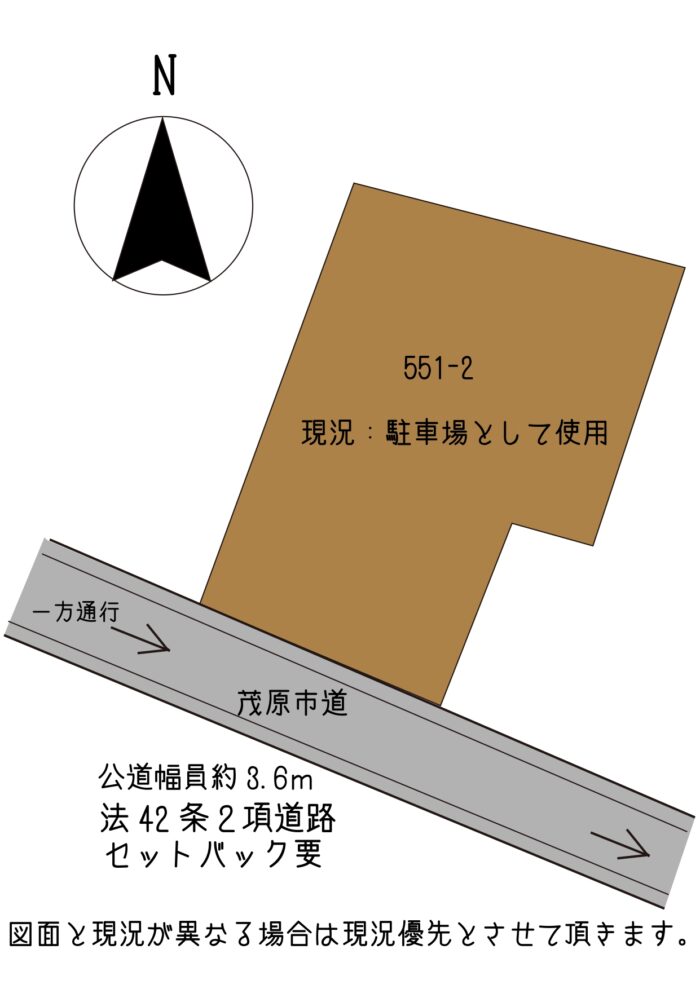 〇前面道路は、茂原市管理の道路です。法42条2項道路となりセットバックが必要です。現況幅員を優先してください。