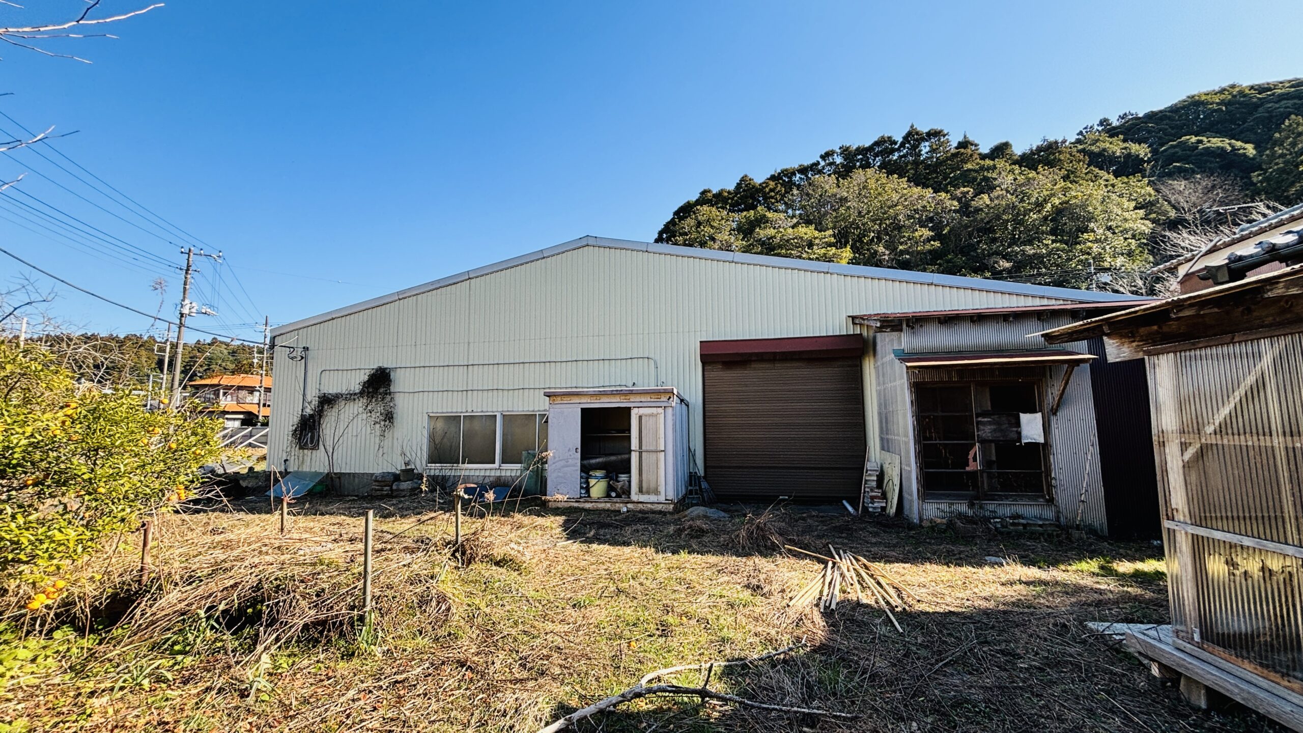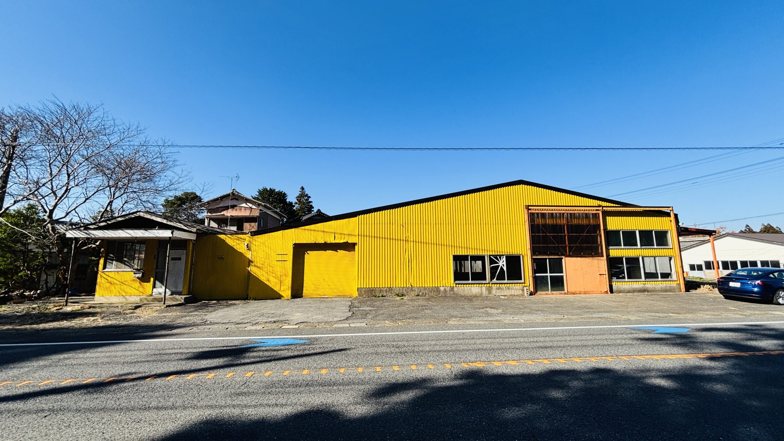いすみ市の国道沿いに位置する大型鉄骨倉庫とクレーン付!昭和築の母屋がある広大な大型中古物件!