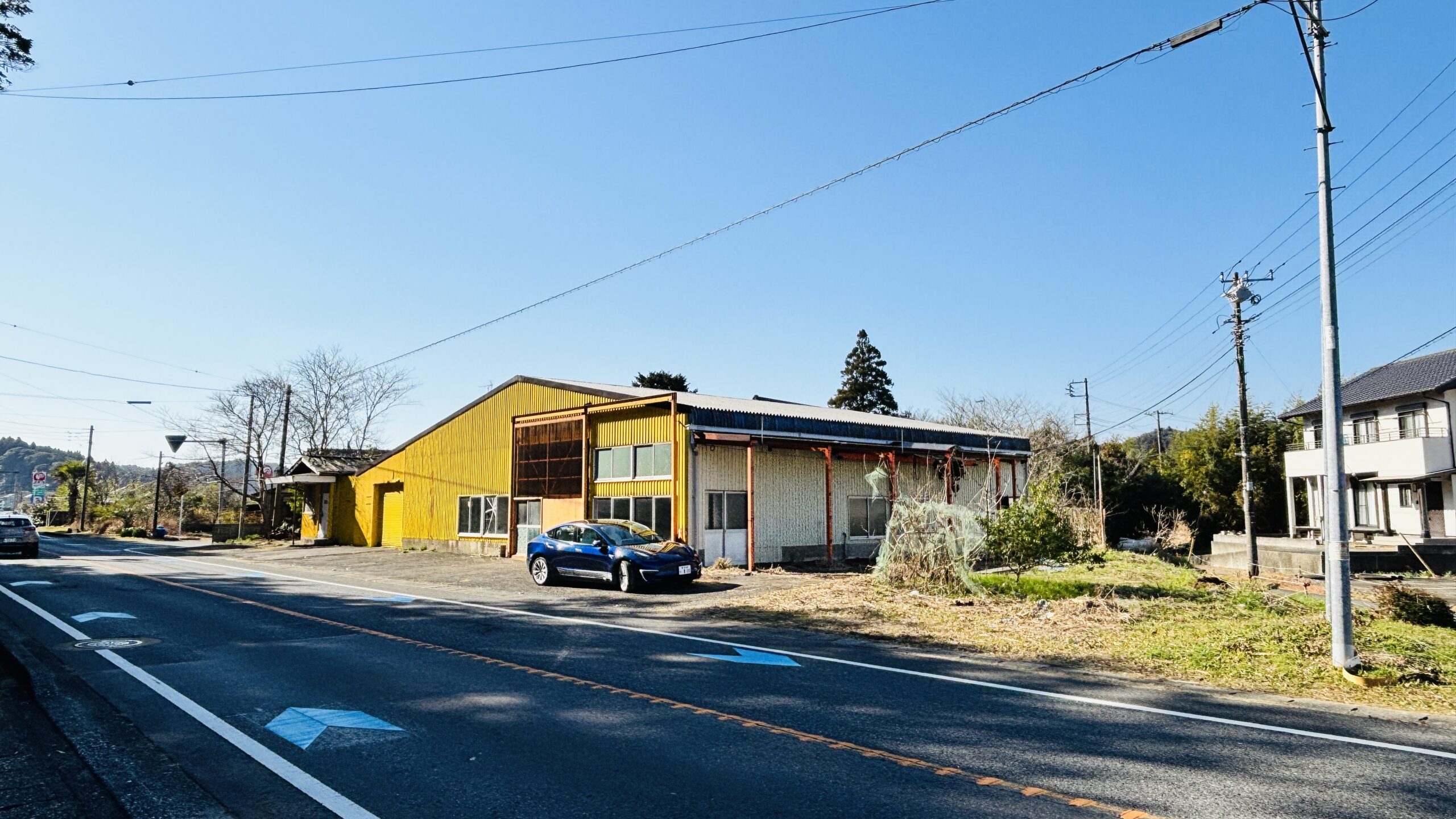 いすみ市の国道沿いに位置する大型鉄骨倉庫とクレーン付の中古物件をご紹介させていただきます。敷地面積約535坪
