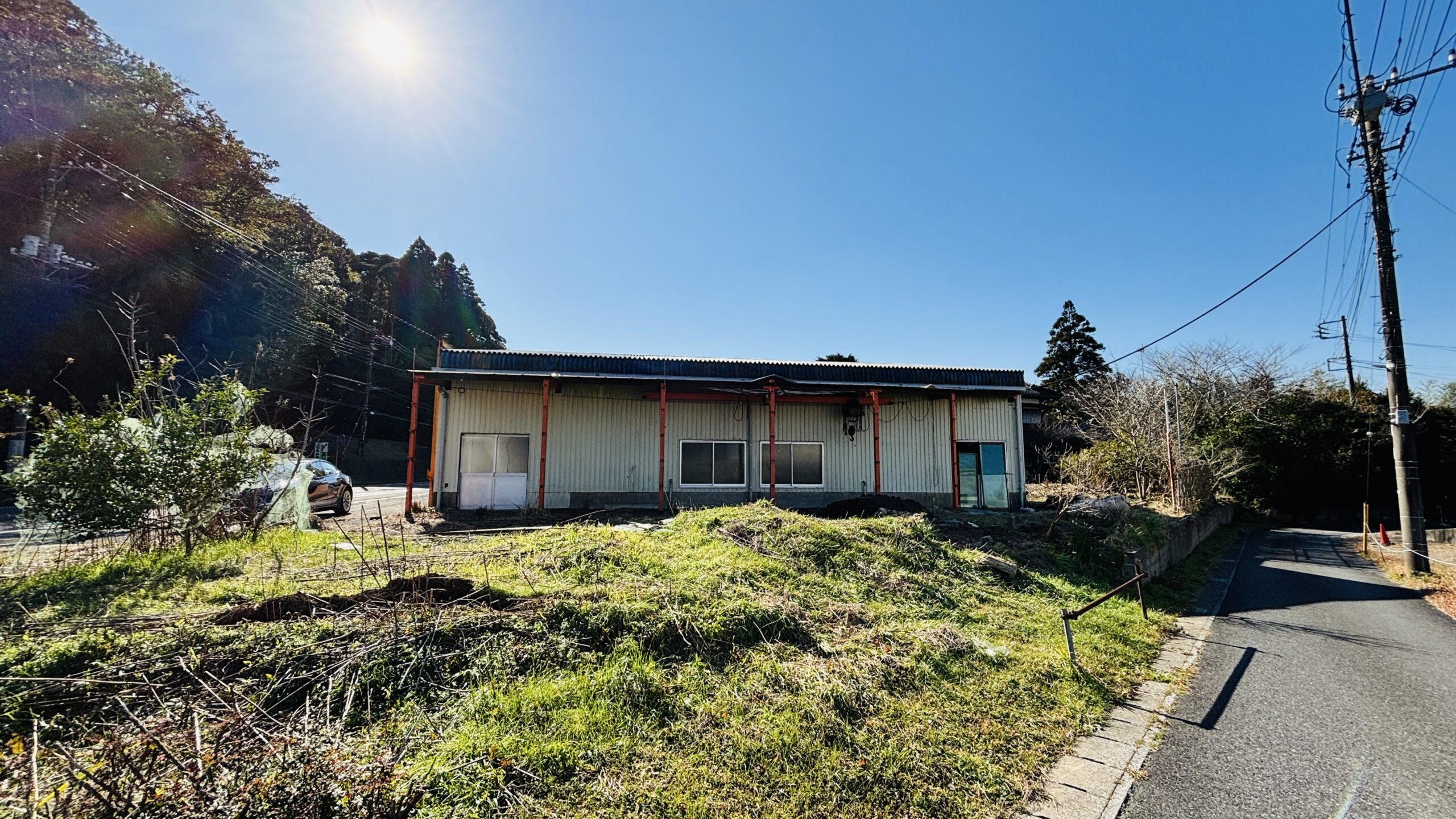 〇事業用としても活用可能な倉庫は、平成2年に新築された鉄骨造スレートぶき平家建で、373.02㎡(約112坪)の大空間を誇ります。