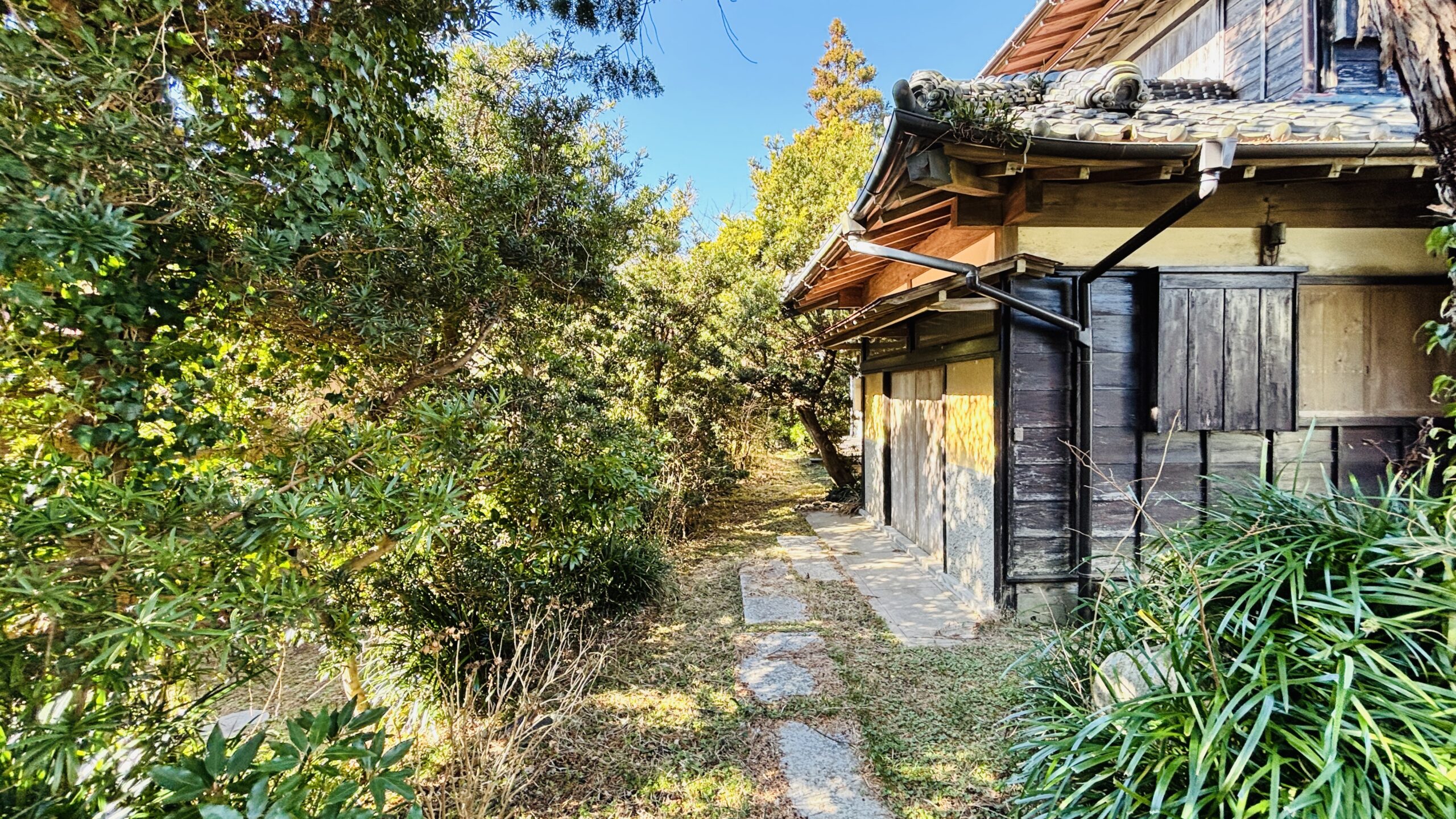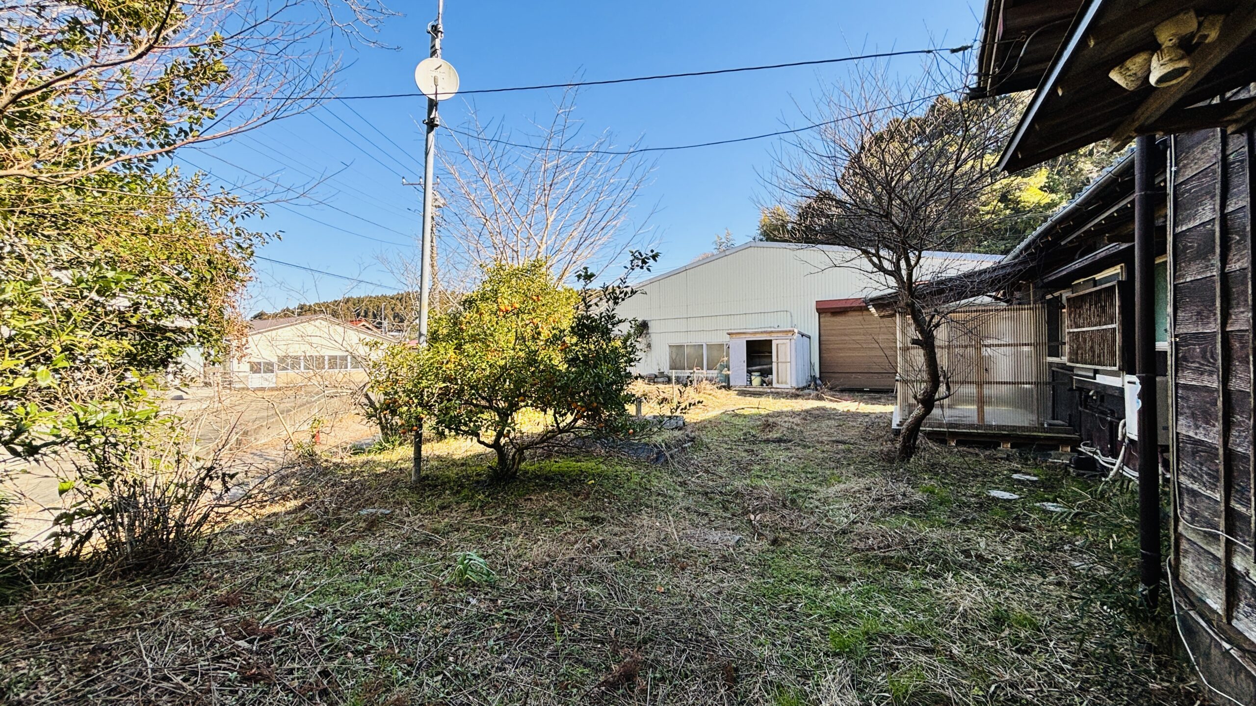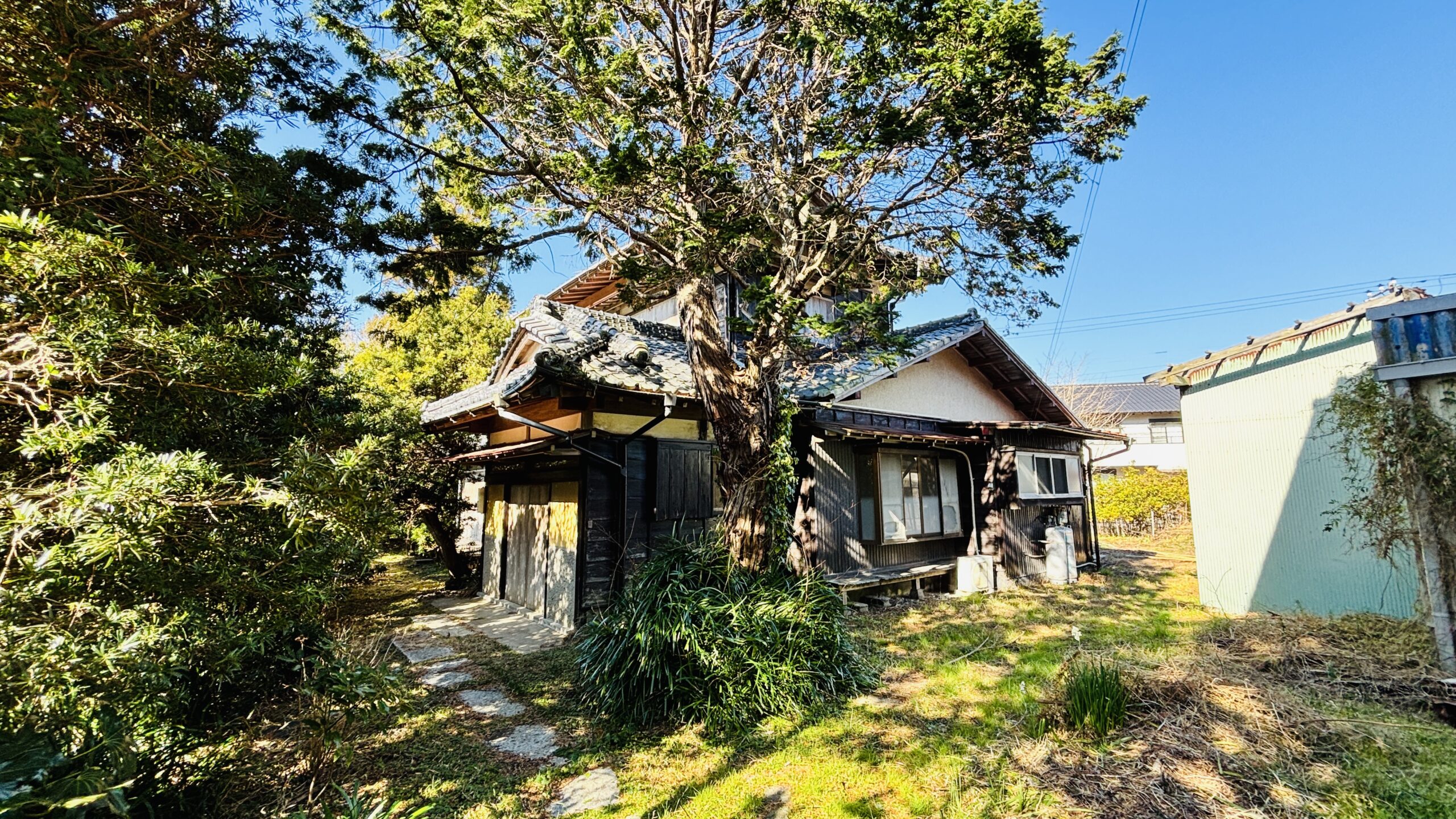 〇敷地は約490坪と広大。母屋は昭和41年築の和風中古住宅で、農家住宅のような趣ある佇まいです。