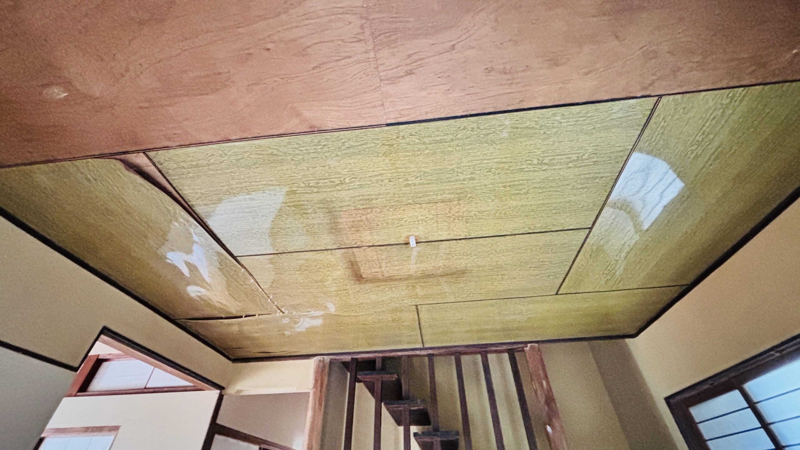 時々雨漏りしたみたいですね。玄関の天井は要リフォームです。