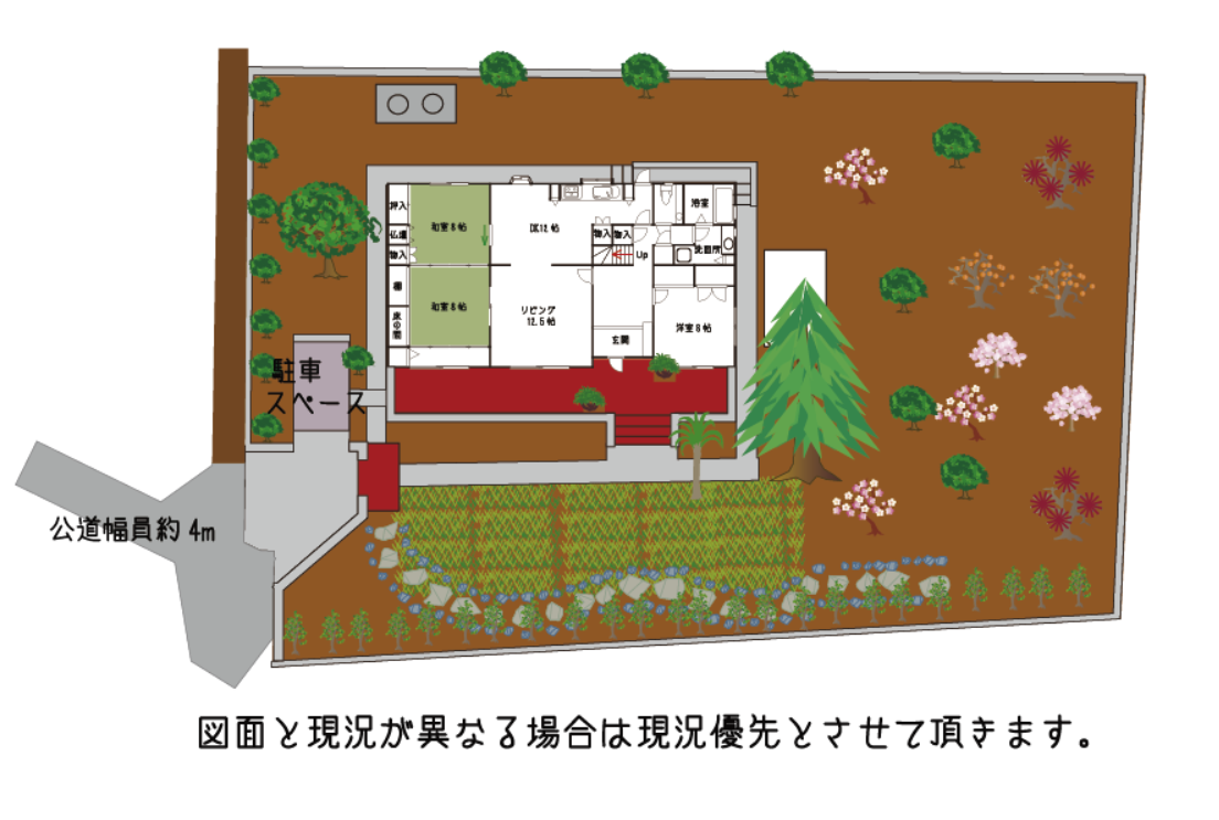 ※接道している道路は認定道路になります。現状道路形状のある部分を計測したところ、幅員約4mございましたが、再建築や増築の際などは専門家による調査が必要となります。